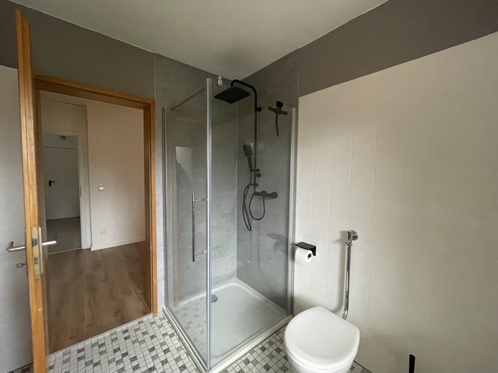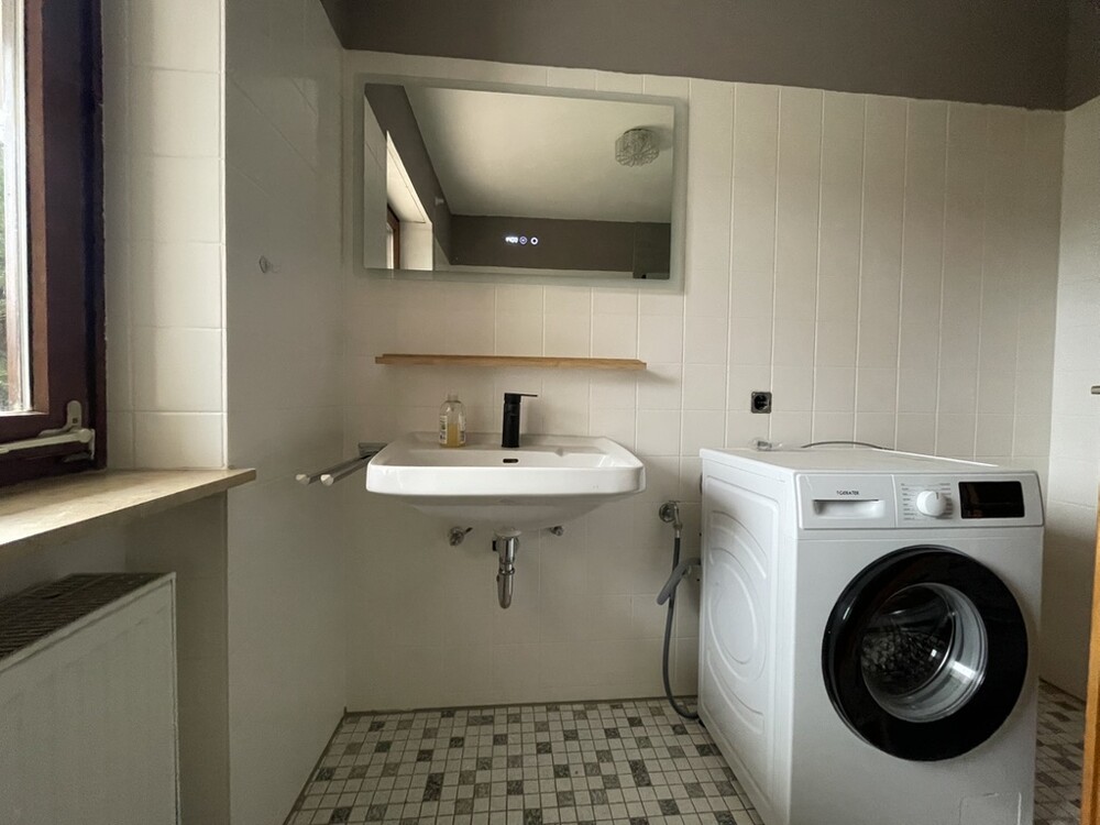 - Badezimmer mit begehbarer Dusche, WC und Waschmaschinenanschluss