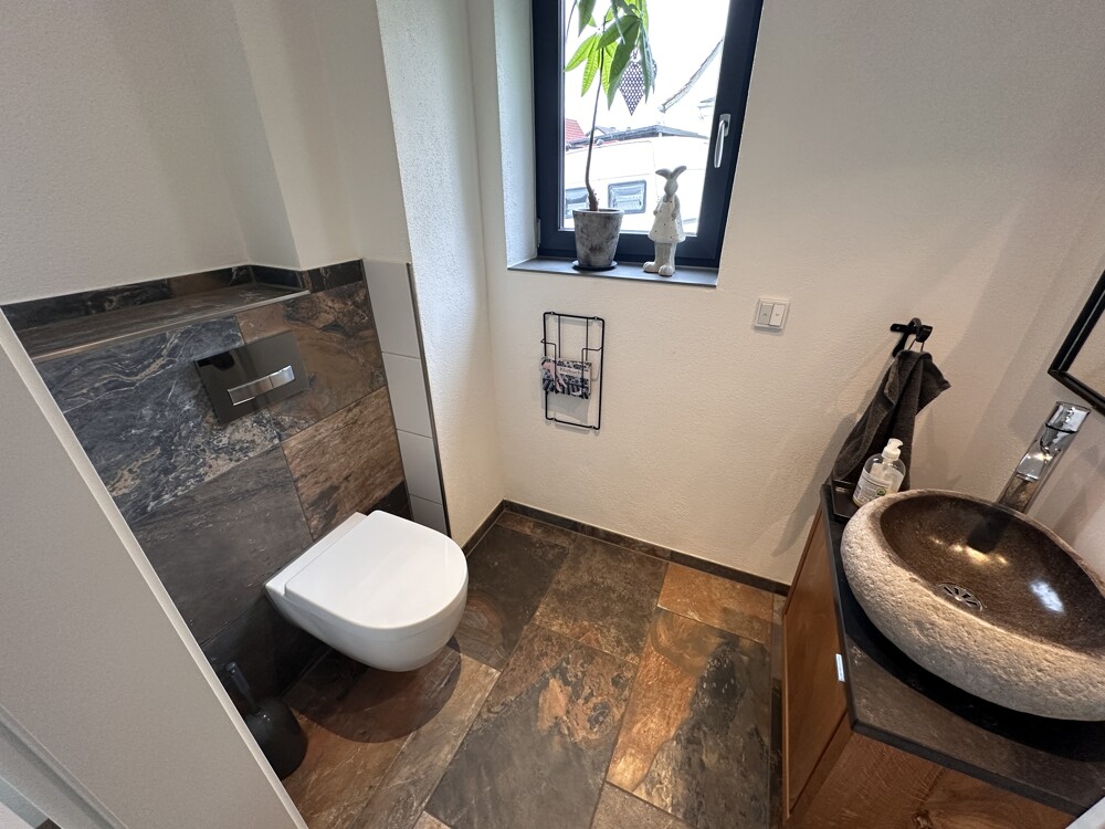 Das großzügige Erdgeschoss mit offenem Wohn-, Ess- und Kochbereich ist das Herzstück des Hauses. Bodentiefe Fenster verleihen eine helle und einladende Atmosphäre und verbinden den Innenraum harmonisch mit der Terrasse. Die hochwertige Einbauküche mit Bora-Umluftkochfeld ist ein echter Blickfang und bereits im Kaufpreis enthalten. Ergänzt wird das Raumangebot durch eine Speisekammer, ein Gäste-WC sowie einen Abstellraum. Besonders hervorzuheben ist die Vorbereitung für einen Holzofen mit Wassertasche, der in den vorhandenen Multispeicher einspeisen kann, eine attraktive Option für nachhaltiges Heizen.