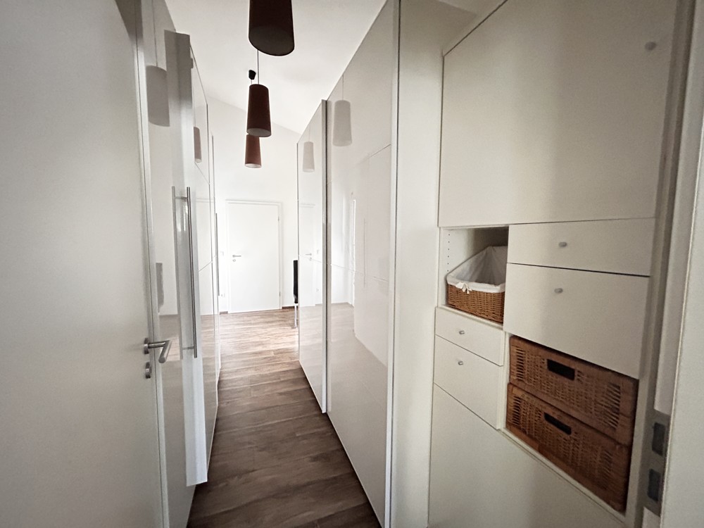 Die Schlafräume der Eltern und der Kinder sind geschickt voneinander getrennt, um jedem Familienmitglied einen eigenen privaten Rückzugsort zu bieten. Beide Bereiche verfügen über ein eigenes Badezimmer. Das Masterbad im Elternbereich ist stilvoll mit einer Eckbadewanne, einer ebenerdigen Dusche, einer Sauna und Doppelwaschbecken ausgestattet. Das Kinder-Badezimmer bietet ebenfalls eine ebenerdige Dusche, ein Doppelwaschbecken sowie ein WC.