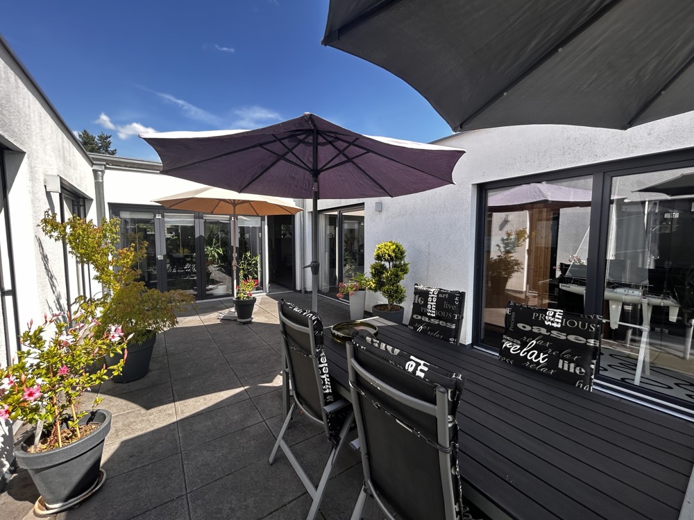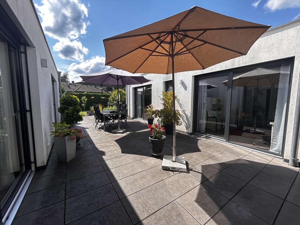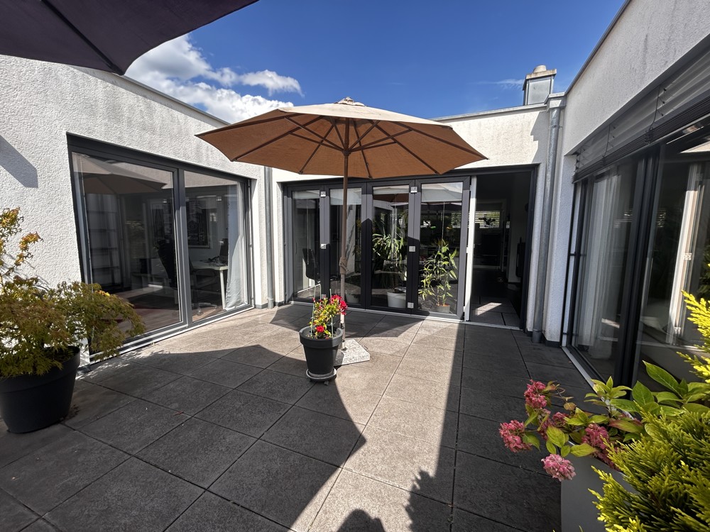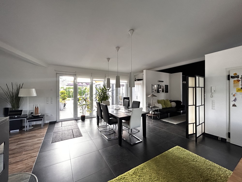 - offener Wohn- und Essbereich mit mehreren bodentiefen Fenstertüren und Ausgang auf den uneinsehbaren Freisitz