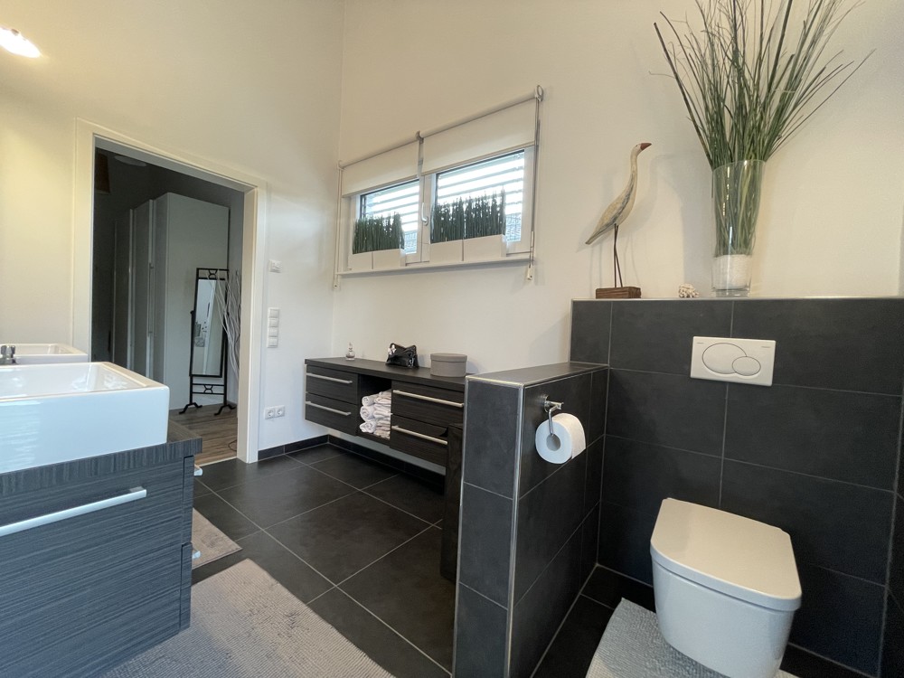 - Badezimmer II mit Doppelwaschbecken, Dusche und WC