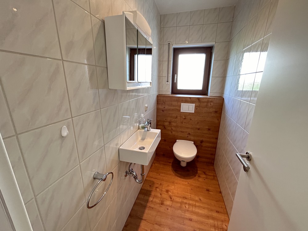 Die Böden im Wohn- und Essbereichen sowie das Badezimmer und Gäste-WC sind mit Fliesen ausgelegt. Die restlichen Räume verfügen über einen Laminatboden. Die Laminatböden wurde teilweise im Jahr 2023 verlegt. Die Vinylböden in der Küche und im Gäste-WC wurden 2024 neu verlegt. Das schicke Badezimmer wurde im Jahr 2020 komplett renoviert und hat im Jahr 2024 ein neues Kunststofffenster erhalten. Die restlichen Fenster sind aus Holz. Die Innentüren der Wohnung wurden 2024 neu eingebaut. Am Wohnhaus wurde bereits ein Vollwärmeschutz angebracht. Die Gas-Brennwerttherme wurde 2020 ausgetauscht und befindet sich im Badezimmer. Es wird mit Flüssiggas geheizt. Der Flüssiggastank befindet sich auf dem Grundstück. Im Wohnzimmer gibt es einen Anschluss für einen Kaminofen.
