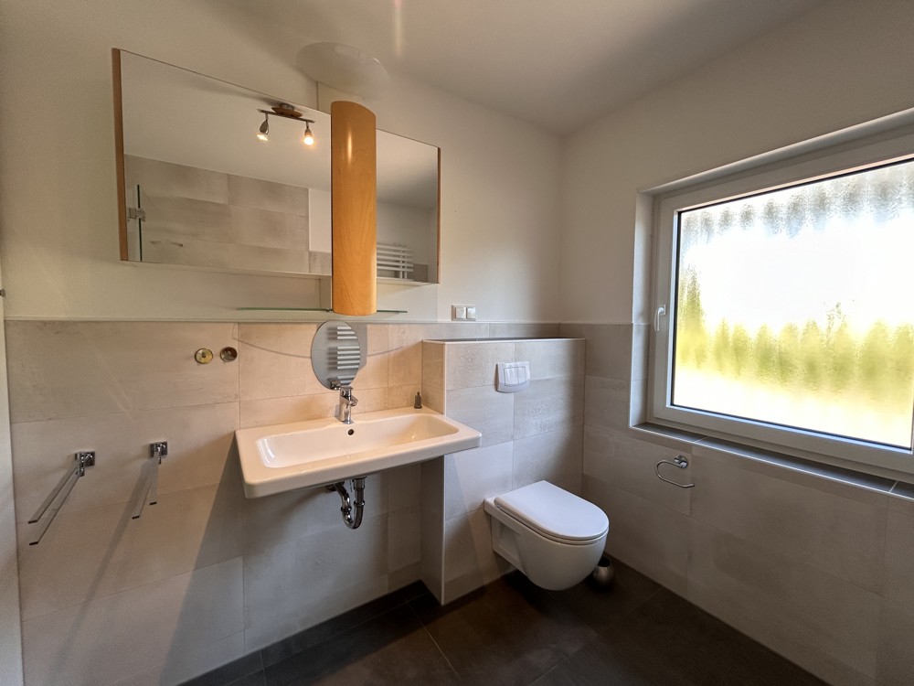- Badezimmer mit begehbarer Dusche, Handtuchwärmer und WC