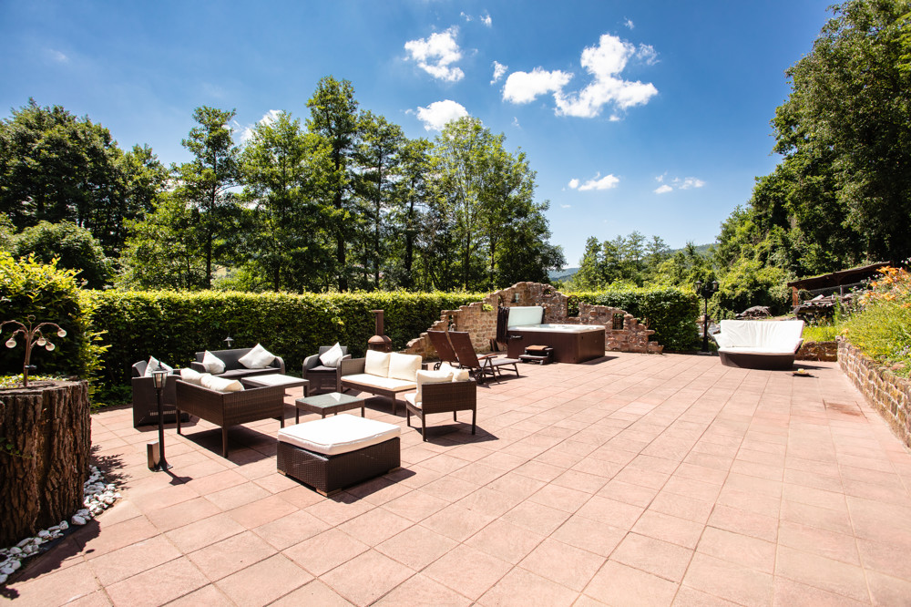 - Eine kleine Wellness-Oase gibt es im ausgebauten Nebengebäude mit Sauna, Ruheraum und Dusche/WC.