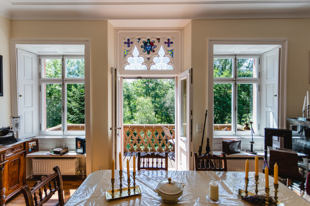 - Im Palais gibt es viele Details zu bewundern: Im Untergeschoss finden Sie einen alten Brunnen, die Außenfassade und Außentreppe sind mit aufwendigen Standstein-Esambles geziert. Weiterhin gibt es ein herrschaftliches Treppenhaus im Innenbereich, Fenster mit Facettenschliff und Buntglas uvm.