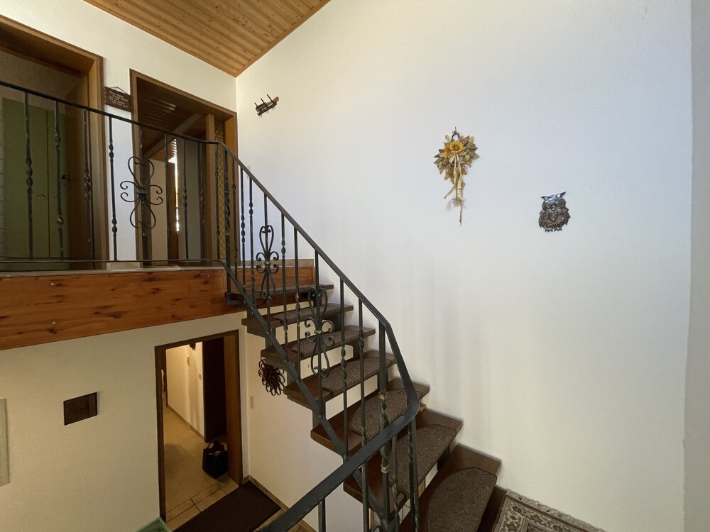 Das Wohnhaus von 1980 erstreckt sich über zwei Etagen und bietet großzügige Platzverhältnisse – ideal geeignet für eine größere Familie. Helle Räume mit durchdachtem Schnitt sorgen für eine angenehme Wohnatmosphäre.