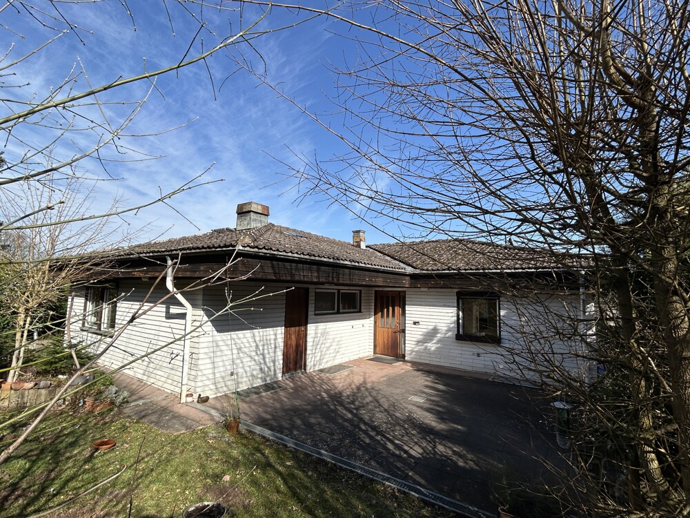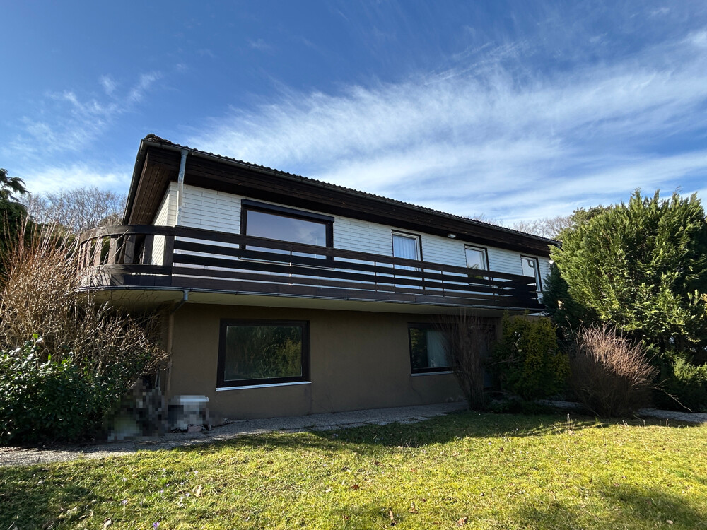 Dieses Einfamilienhaus befindet sich auf einem ca 1.182 m² großen, herrlichen Grundstück und liegt in ruhiger, idyllischer Waldranlage. Im Jahr 1972 wurde das Anwesen in Fertigbauweise mit Elementen der Firma "Schwedische Elementhäuser GmbH" errichtet, während das Untergeschoss in massiver Bauweise ausgeführt wurde.
