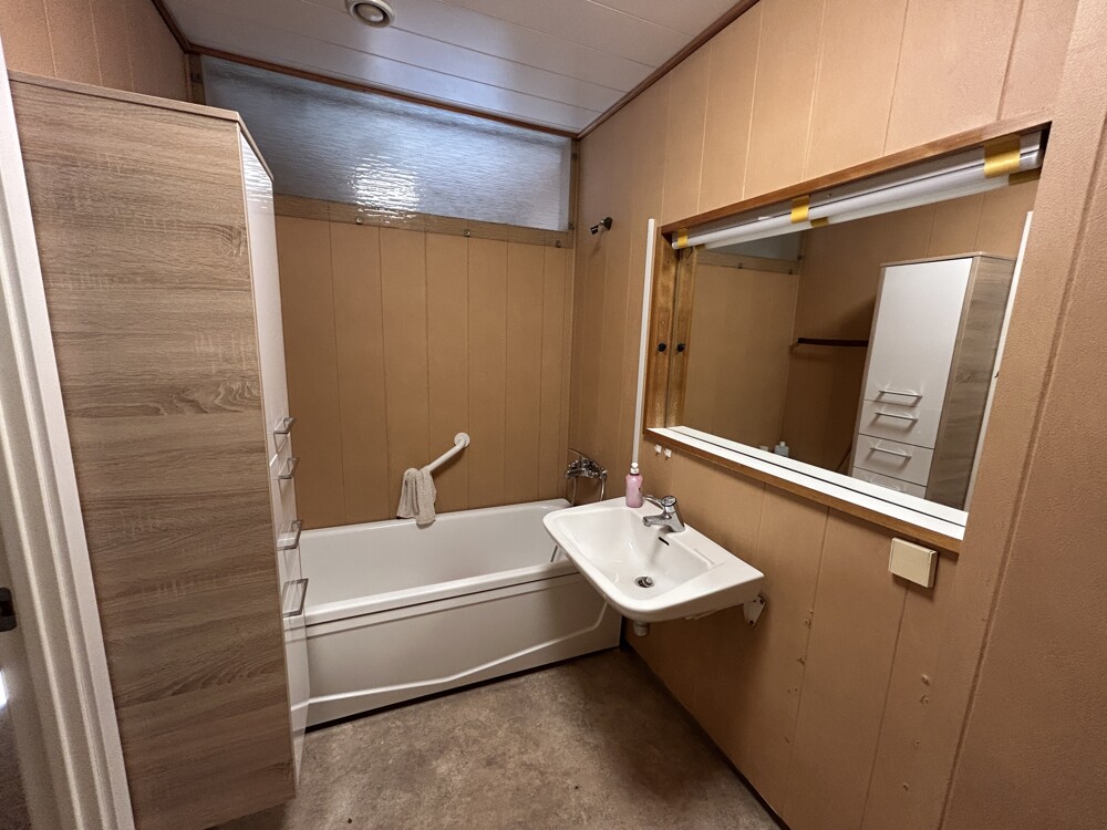 - Badezimmer mit Badewanne und Waschmaschinenanschluss