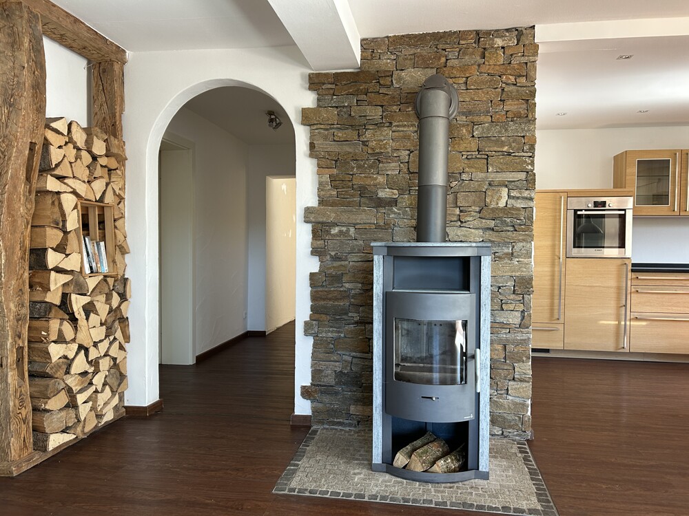 Die Einliegerwohnung präsentiert sich in einem sehr gepflegten Zustand mit hellen, weißen Wandflächen und modernen Bodenbelägen. Die tolle Einbauküche mit Holzfronten und hochwertigen Elektrogeräten ist bereits im Mietpreis enthalten. Das kürzlich stilvoll modernisierte Badezimmer überzeugt mit einer bodengleichen Dusche sowie Anschlüssen für Waschmaschine und Trockner. Beheizt wird die Wohnung über eine Gasheizung. Zusätzlich sorgt ein Kaminofen für behagliche Wärme und eine gemütliche Atmosphäre.