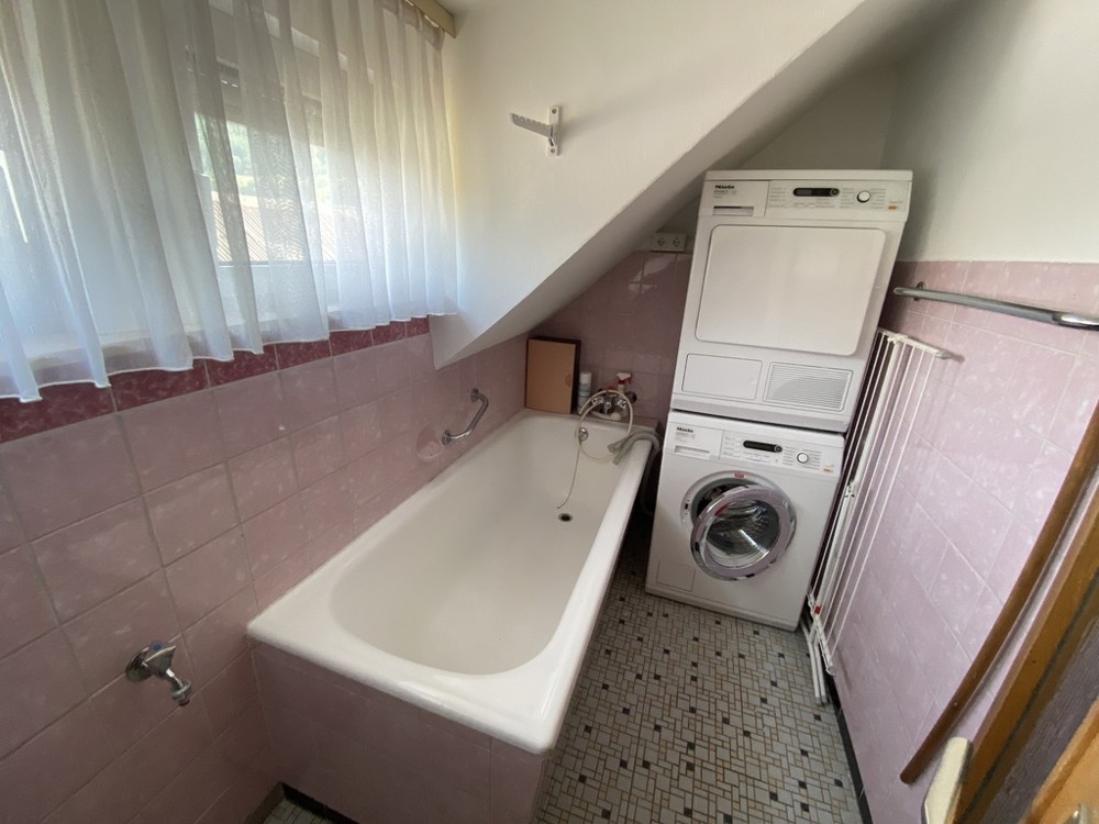 - Badezimmer mit Badewanne, WC und Waschmaschinen-/Trockneranschluss