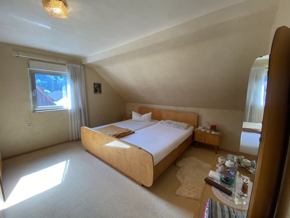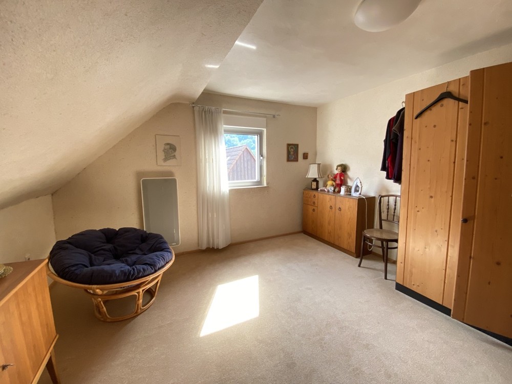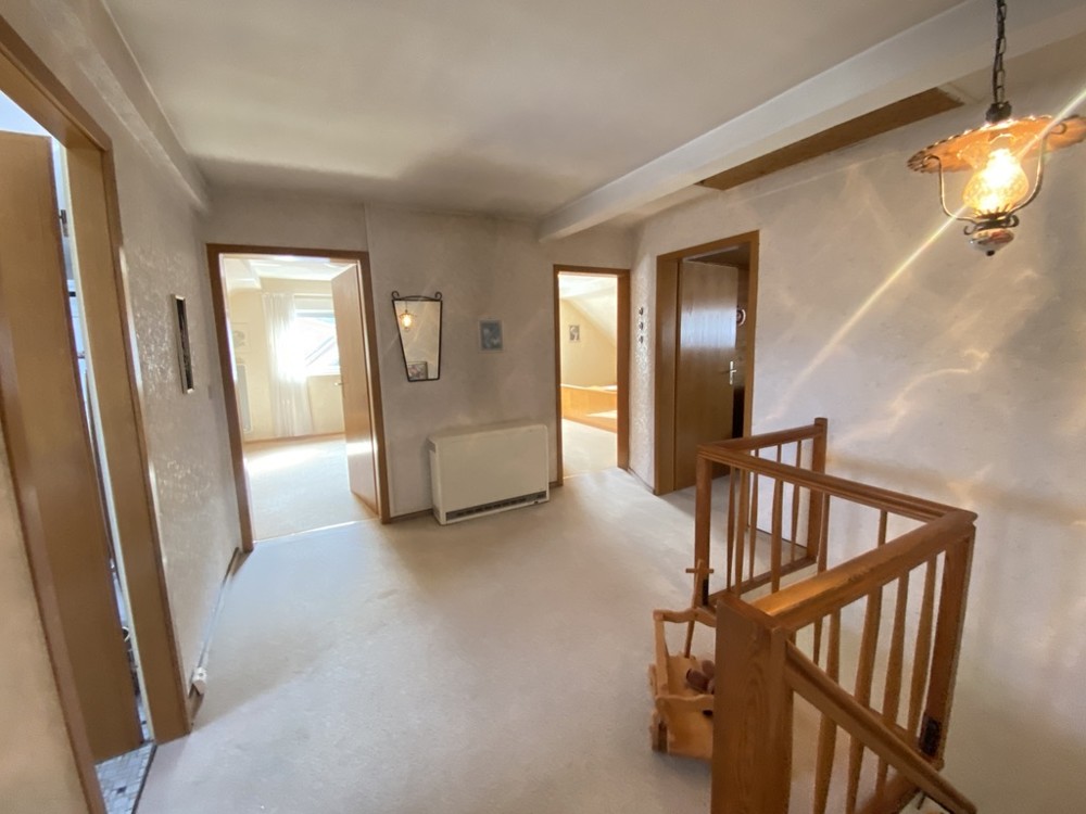 Auf ca. 100 m² Wohnfläche finden Sie in diesem Anwesen verteilt auf Erd- und Obergeschoss ein helles Wohnzimmer, eine Küche mit Essbereich, drei Schlafräume, zwei Bäder sowie ein Raum, der als Büro oder Hauswirtschaftsraum genutzt werden kann. Vom Erdgeschoss gibt es einen direkten Zugang in die große Garage mit elektrischem Tor, die sich hervorragend zum Unterstellen eines Fahrzeugs, Oldtimers oder Motor- und Fahrräder eignet (Höhe ca. 3,10 m).