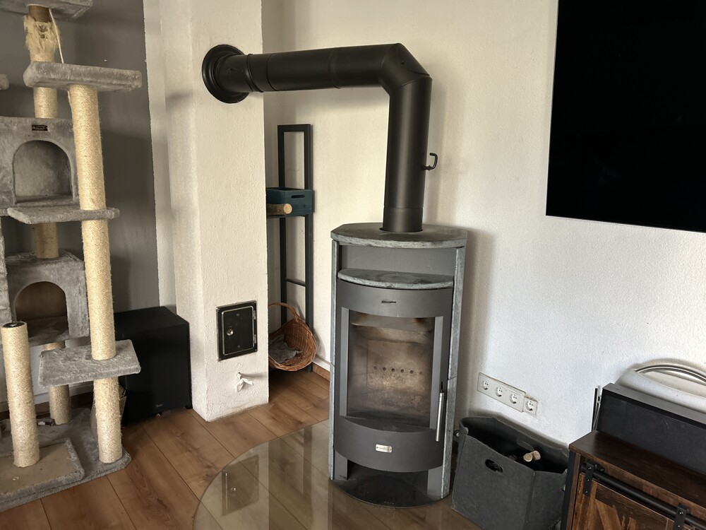 - Der Kaminofen im Wohnbereich wurde 2022 aufgestellt.