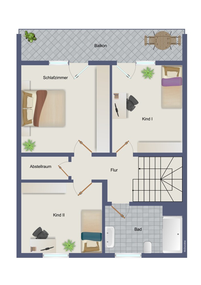 - Kinderzimmer I mit Ausgang auf den Balkon