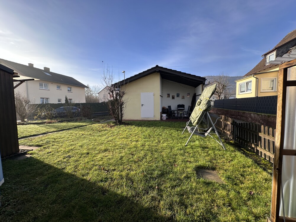 Der gepflegte Garten ist auch über den Wintergarten erreichbar. Ob als Spielbereich für Kinder, als ruhiger Rückzugsort oder für gesellige Stunden im Freien, hier findet jeder seinen Platz. Zusätzlich besteht ein direkter Zugang vom Garten zu den Garagen. Weiterhin gibt es auch ein Freisitz hinter der Garage, der ebenfalls über den Garten erreichbar ist.