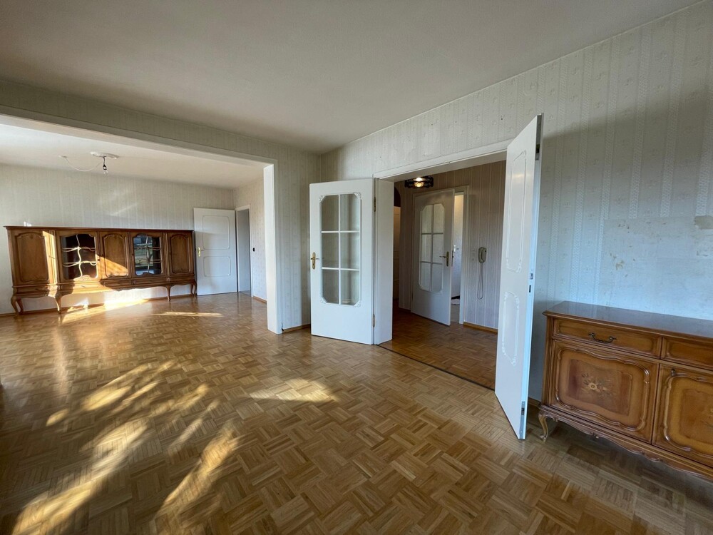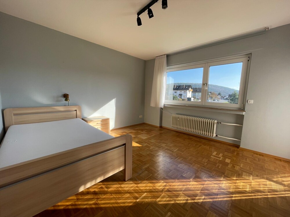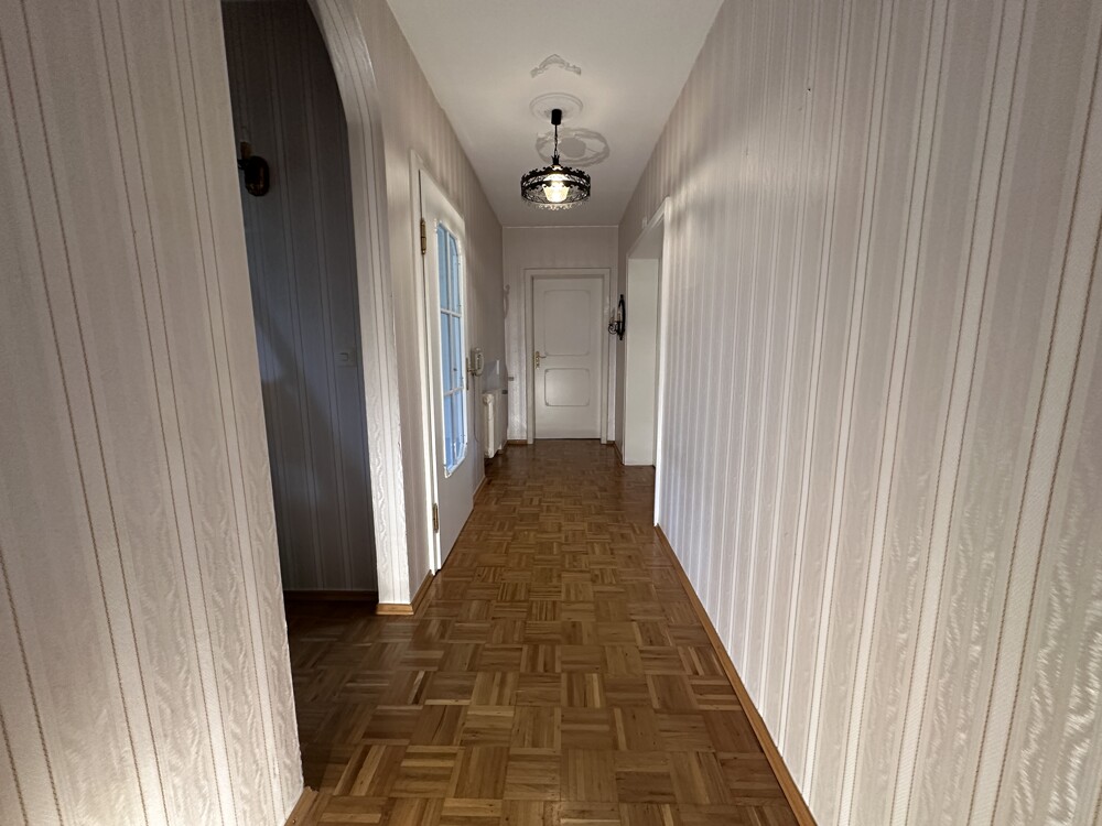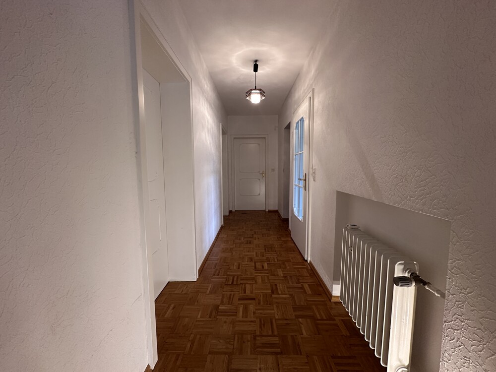 Das Obergeschoss bietet viel Platz mit einem großzügigen Elternschlafzimmer sowie zwei Kinderzimmern. Der Balkon ist sowohl vom Elternschlafzimmer als auch von einem der Kinderzimmer begehbar. Ein modernisiertes Badezimmer mit Dusche, Wanne und WC, eine Garderobe sowie ein zusätzliches Gäste-WC runden diese Etage ab. Auch hier sorgen die Echtholzparkett-Böden für ein behagliches Wohngefühl. Das Badezimmer wurde Ende der 90er-Jahre modernisiert.