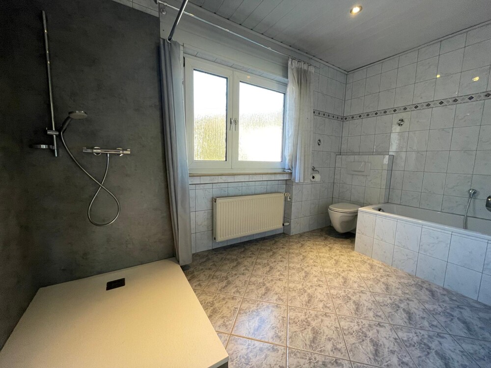 - Badezimmer mit Dusche und Wanne und WC