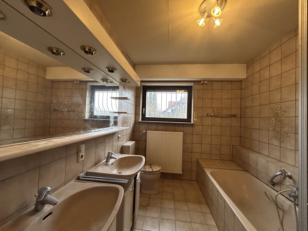- Badezimmer mit Badewanne, Dusche und WC