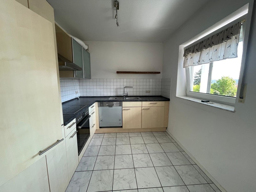 Die Böden der Wohnung sind mit hellem Laminat und Fliesen ausgelegt. Die derzeitige Küche stammt vom Vormieter und wird noch ausgebaut.