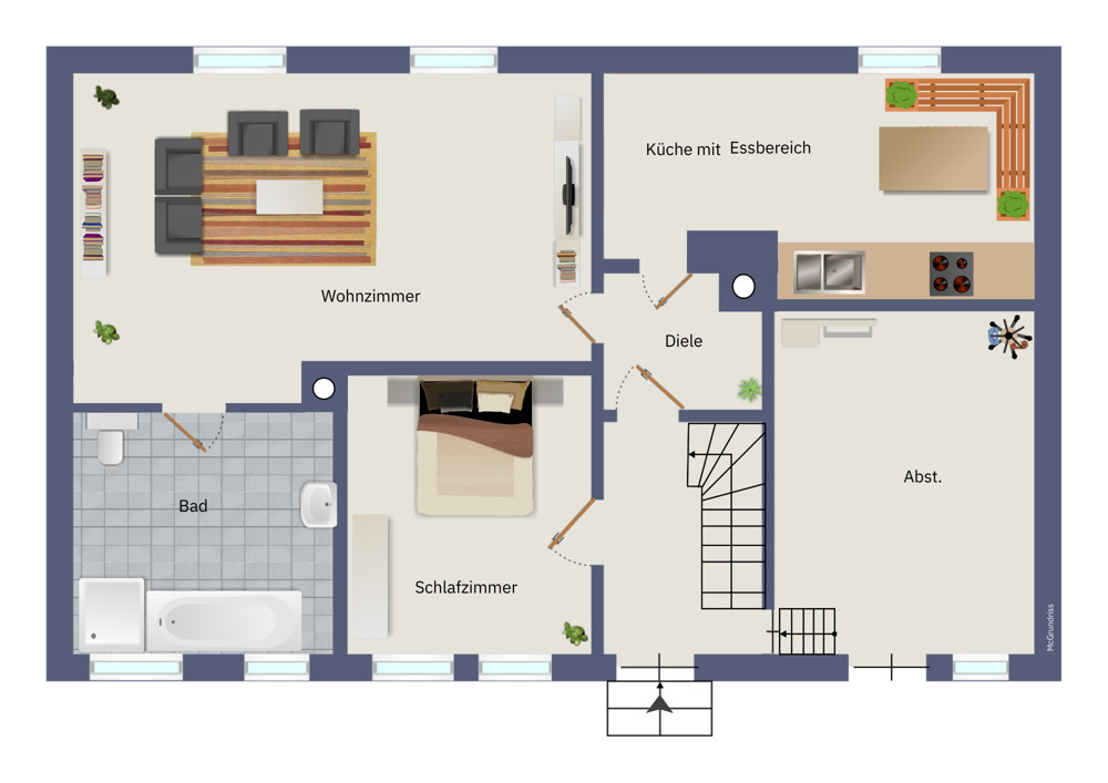 Erdgeschosswohnung mit ca. 49 m² Wohn-/Nutzfläche: