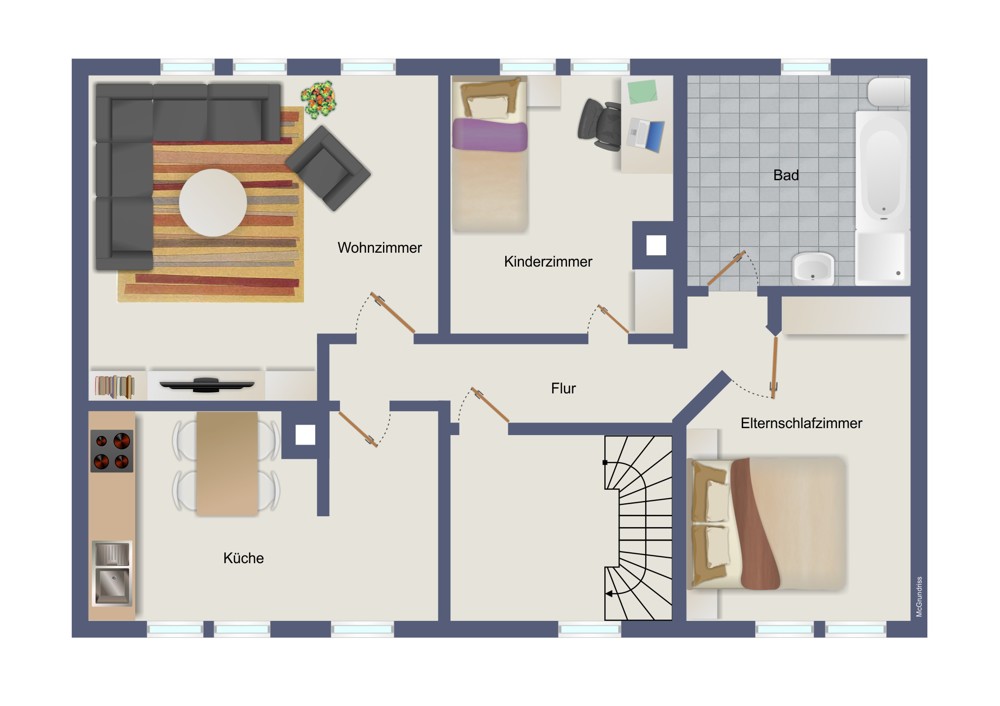 Obergeschosswohnung mit ca. 64 m² Wohnfläche: